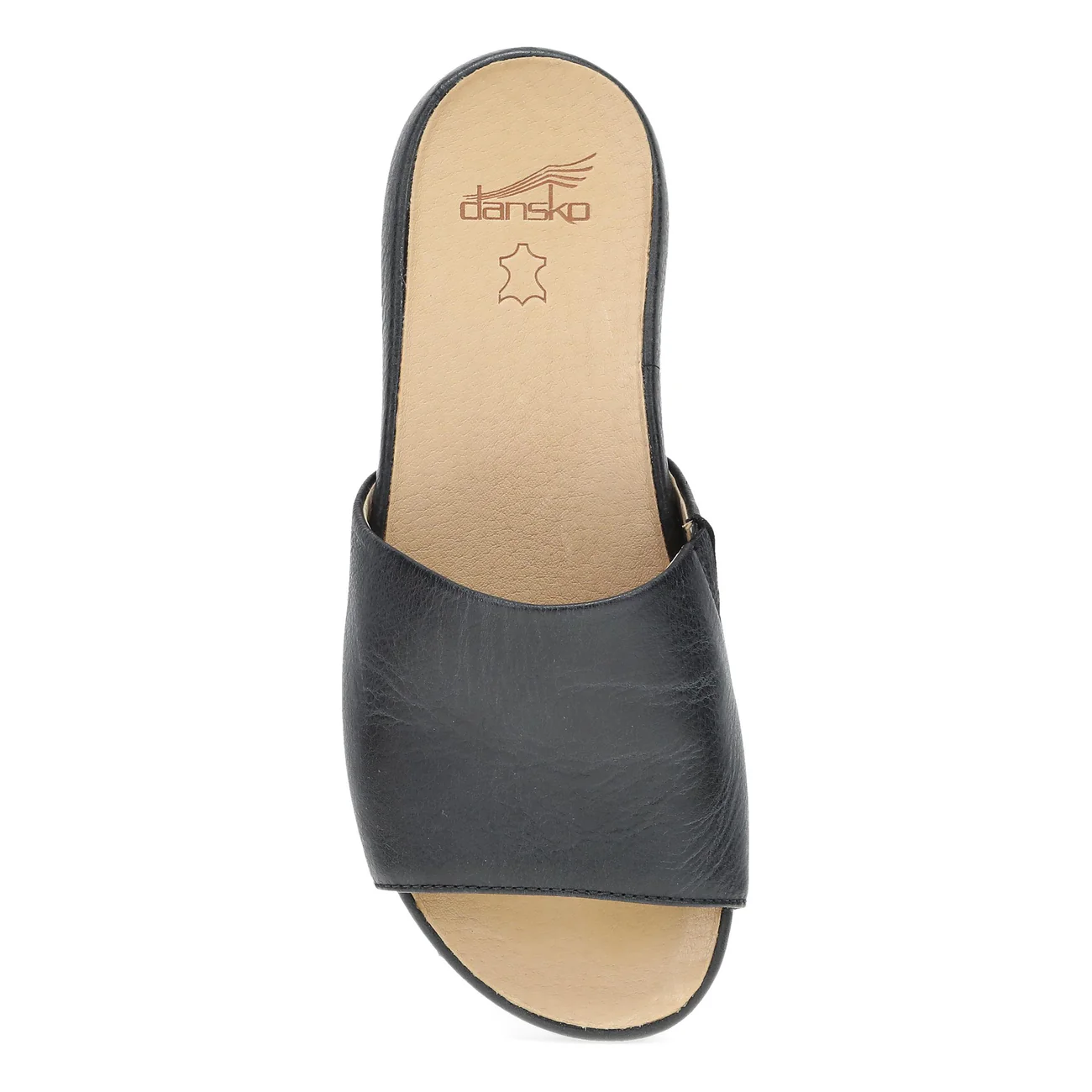 シックでミニマルなスライドサンダル。どんなスタイルに合わせやすい一足です。レザーでラップされたプラットフォームソールは快適な歩行を助けます。