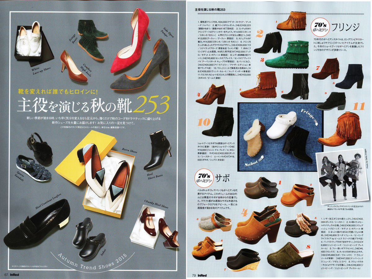11/7売 宝島社 「InRed」 12月号に「30代女子のご褒美リスト リラックス&モード 冬のおしゃれ靴」として Sonja ヒッコリーキャブリオ が掲載されました。
