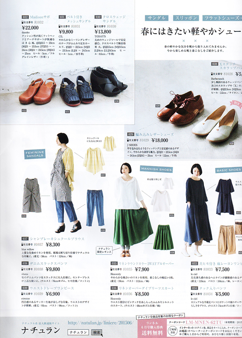 5月20日発売、 宝島社 「リンネル 7月号」 に dansko が掲載されました。