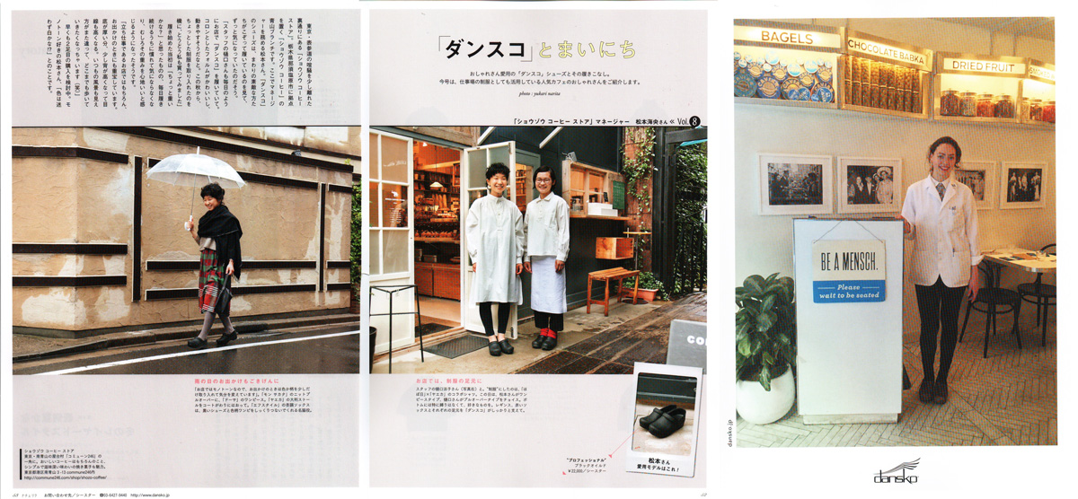 12月20日発売、主婦と生活社 「ナチュリラ vol.32 冬号 ダンスコとまいにち P52/53 」 に「ショーゾー コーヒーストア」マネージャー 松本海央さんとスタッフ 樋口法子さんがダンスコご愛用で掲載されました。 dansko 広告も掲載中です。