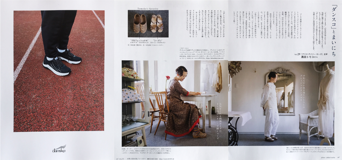 3月20日発売、主婦と生活社 「ナチュリラ vol.33 春号」 にダンスコが掲載されました。 dansko 広告も掲載中です。