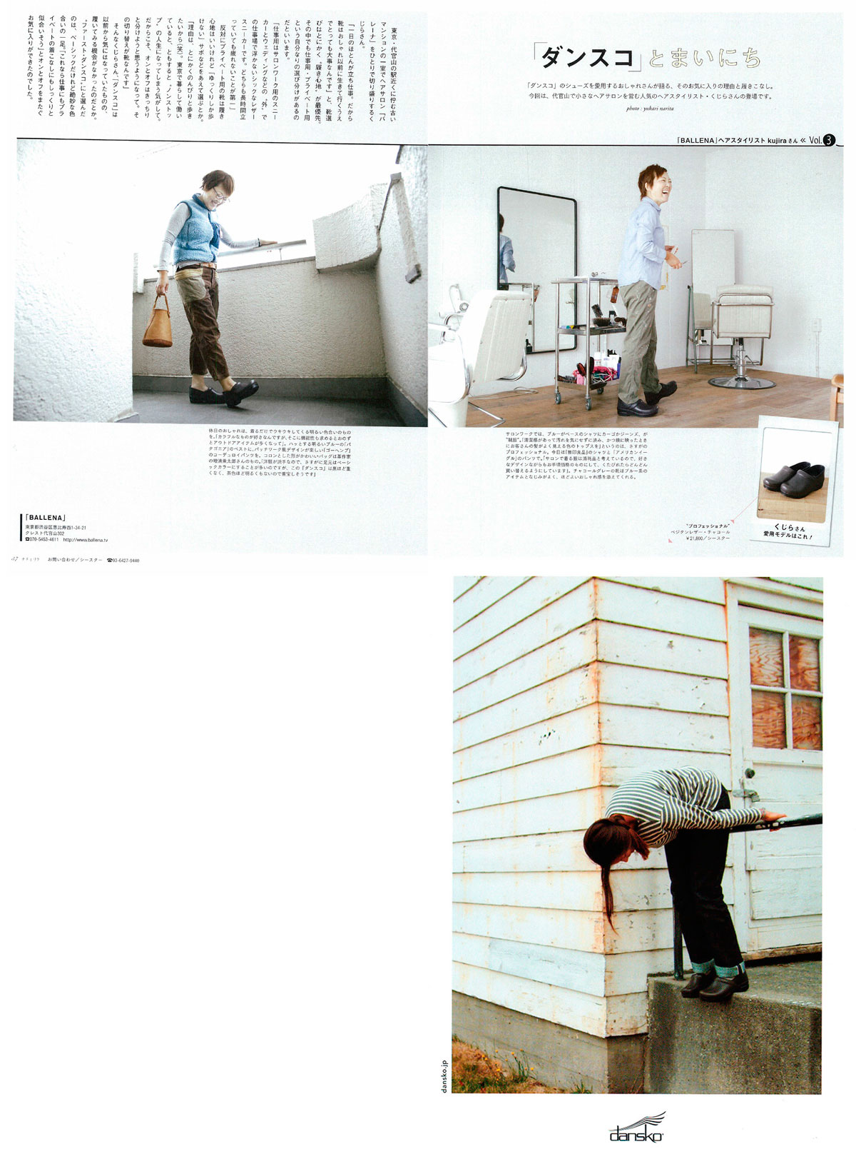 9月25日発売、主婦と生活社 「ナチュリラ vol.27 秋号 Vol.3 ダンスコとまいにち 」 に「BALLENA」オーナーの人気ヘアスタイリスト・くじらさんがダンスコご愛用で掲載されました。 Dansko 広告も掲載中です 。