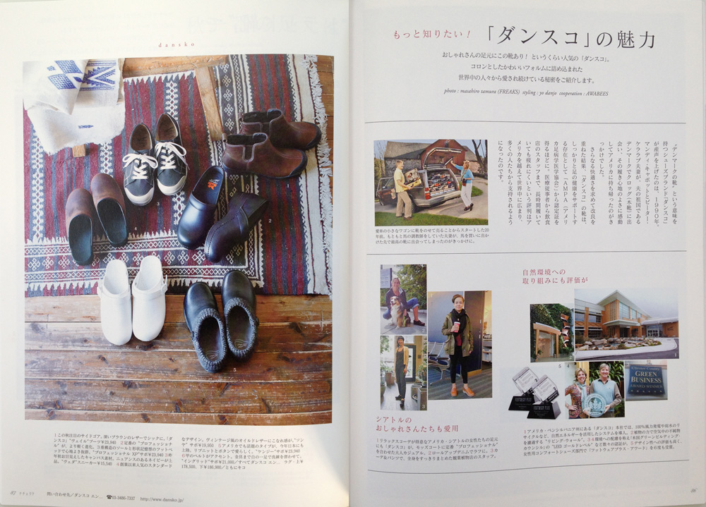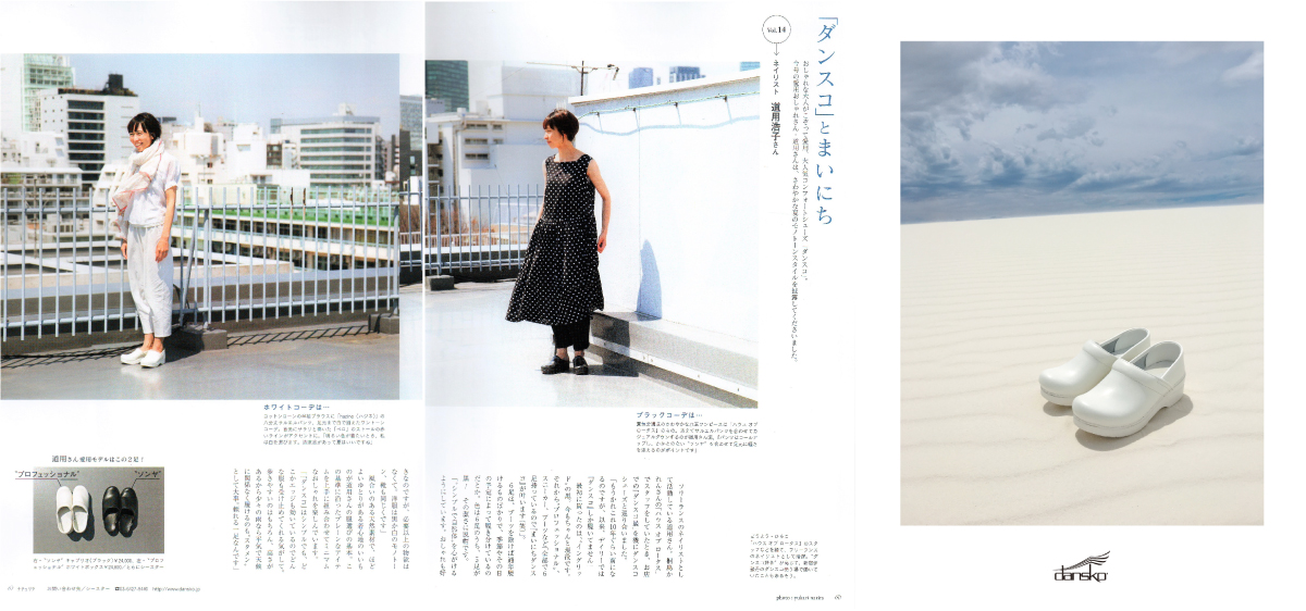 3月10日発売、主婦と生活社 「ナチュリラ vol.25 2014 春号 」 に Dansko が掲載されました。 ダンスコとまいにち vol.1 エッセイスト「in-kyo」店主 中川ちえさんが Ingrid White をご紹介していただきました。