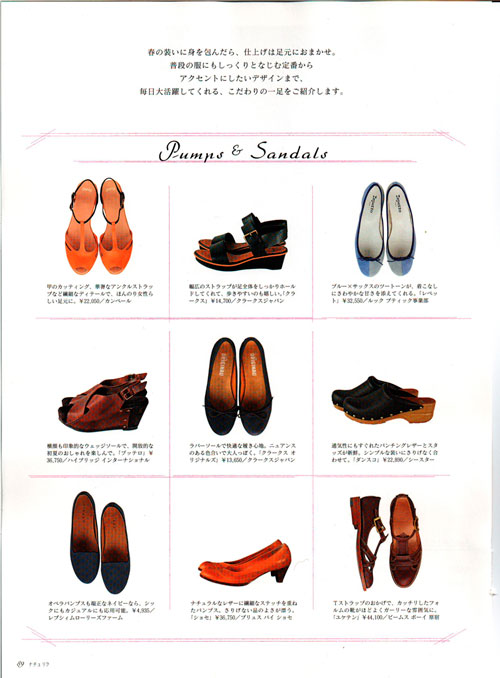 6月10日発売、主婦と生活社 ナチュリラ Vol.10 2010 サンダル特集に Sela サンドパイパー、 Ingrid ブラックオイルド 、 Mila ブラウンバーニッシュドヴェジ と、 Adele ブラウンナッパ が掲載されました。